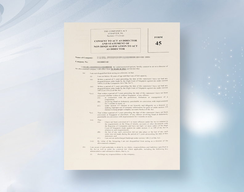 公司董事:普通公司至少1人以上,公众公司至少2人以上,都必须有1个新加坡户籍或就业证持有者担任公司董事。