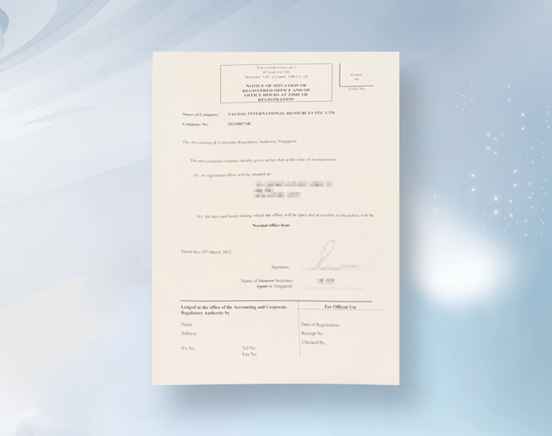 公司注册地址:必须有新加坡当地的法定注册地址
