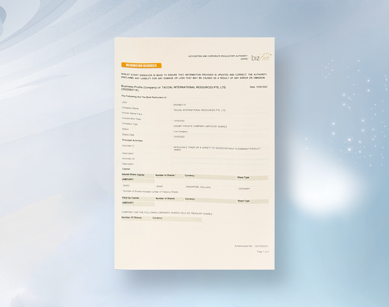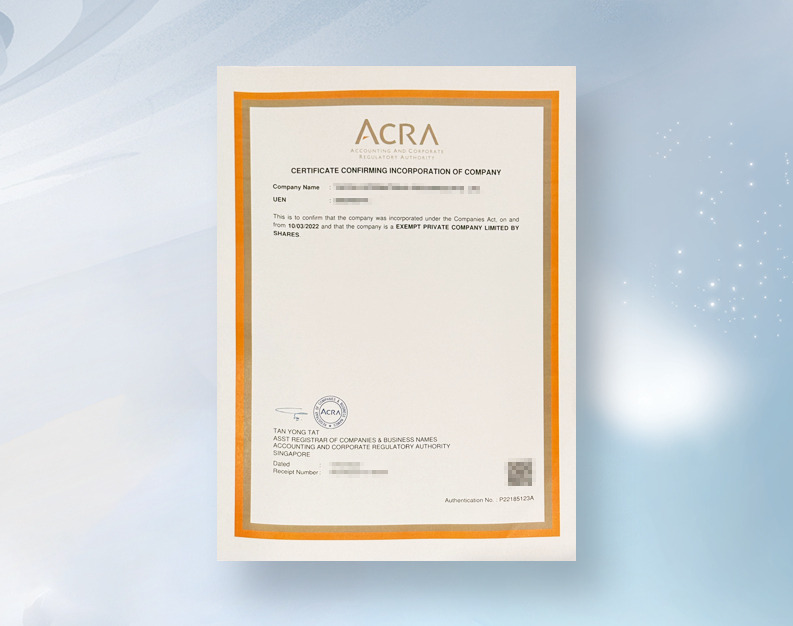 公司名称:填写公司英文名称,结尾以pte.ltd./imited作结束语