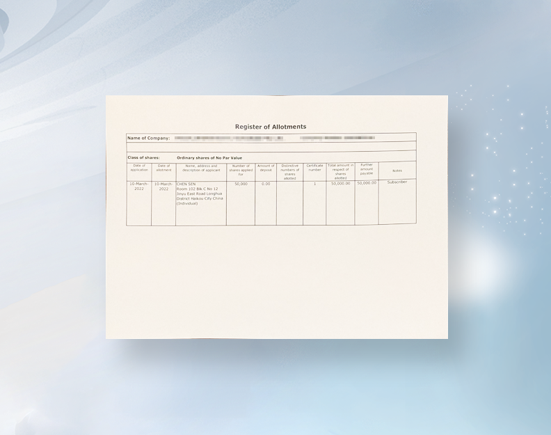 董事经理、公司秘书和审计师详情表和股票发出记录,需在公司成立后1个月内呈交。